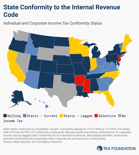 For Congress, work on the One Big Beautiful Bill Act (OBBB) is done. But in state capitols, the work has not yet begun. Many of the tax changes in the federal reconciliation act flow through to state tax codes—automatically in some states, and subject to an update in states’ Internal Revenue Code (IRC) conformity date in others.